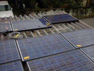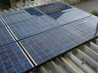 どのように載せるか位置を決めて,ソーラーパネルを固定.